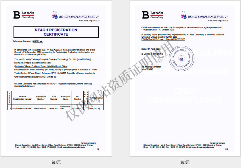 Reach注冊(cè)證書(shū)