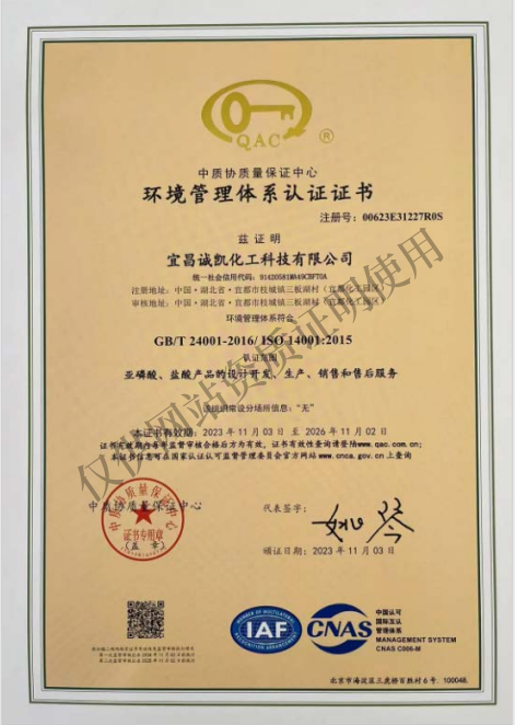 環(huán)境管理體系認(rèn)證證書(shū)